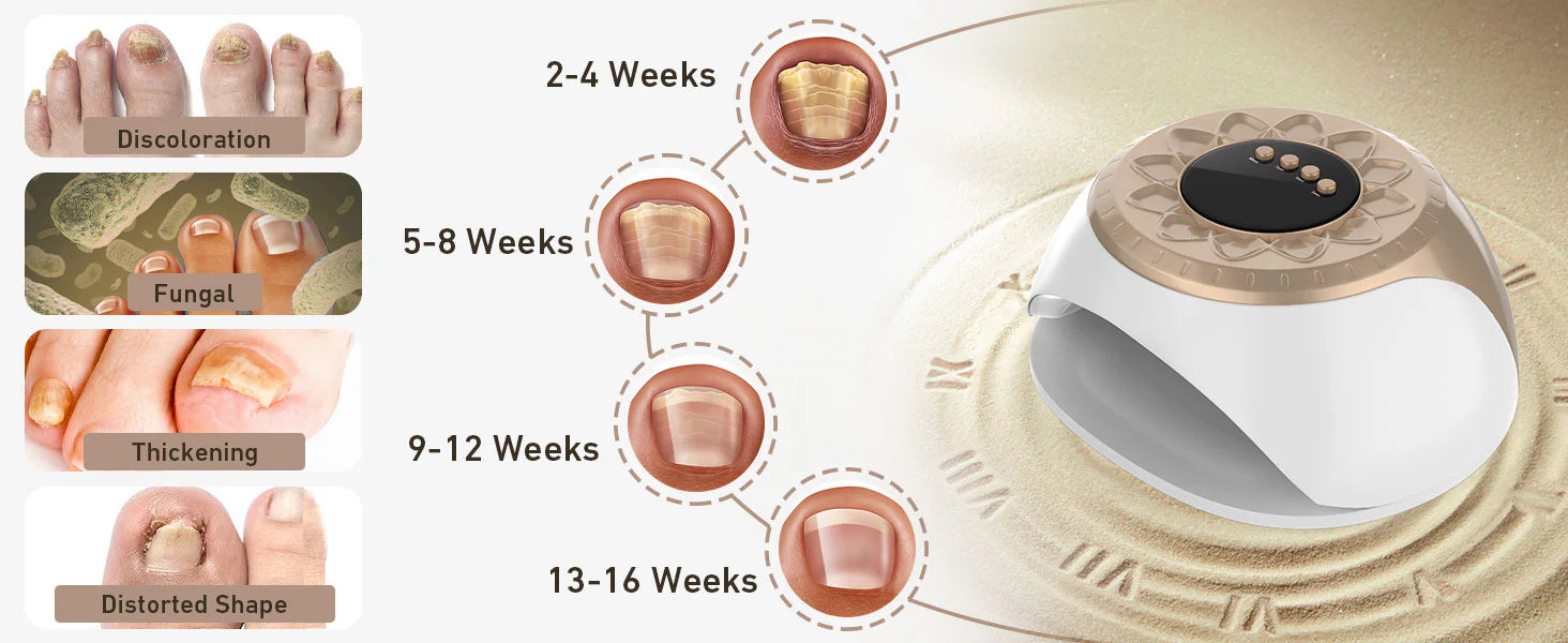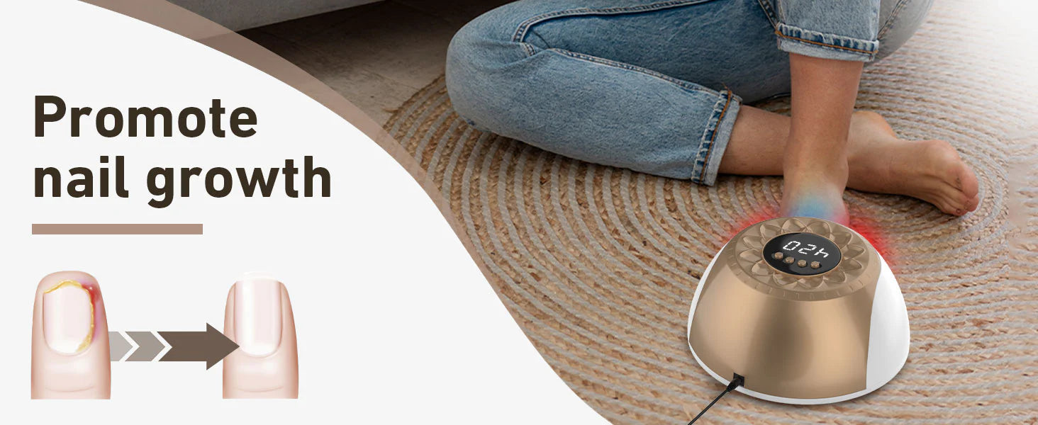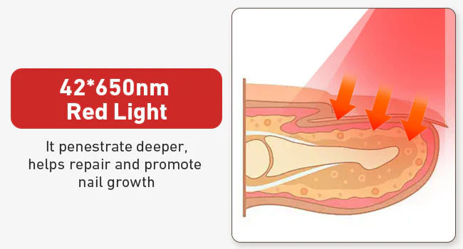The 910nm infrared light penetrates deeper into the nail and surrounding tissue, providing enhanced therapeutic effects on the fungus and promoting faster recovery. Although infrared light is invisible to the naked eye, it is actively working to treat the infection. This is completely normal and part of the device's functioning.