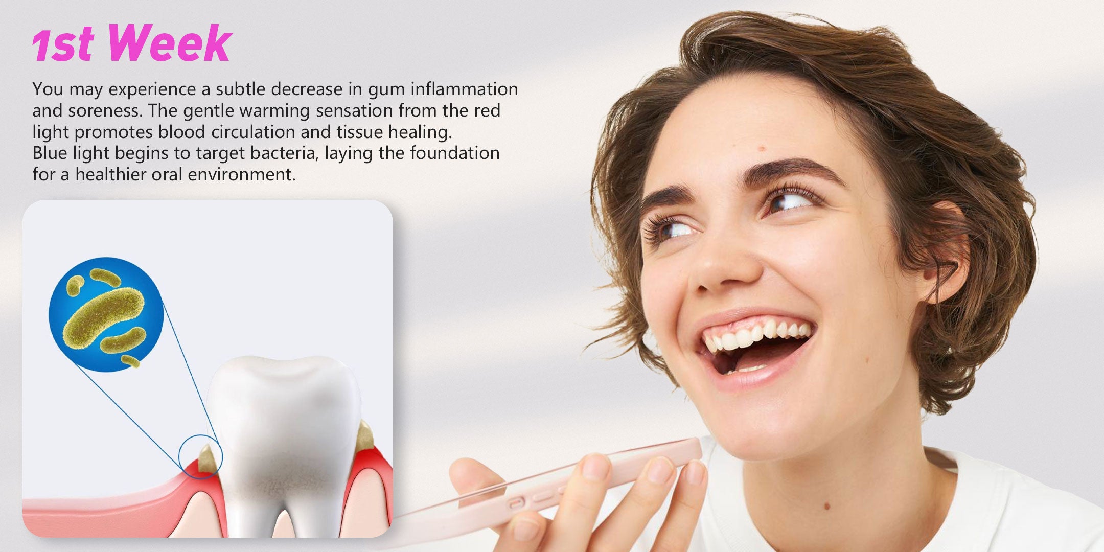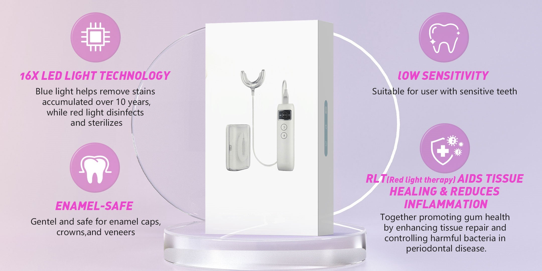 I compared many different models on the market and finally chose this device with red light treatment. In addition to whitening my teeth, it can also treat my bleeding gums. I always bleed when I brush my teeth. Since using it, my wounds have become worse. Can heal quickly