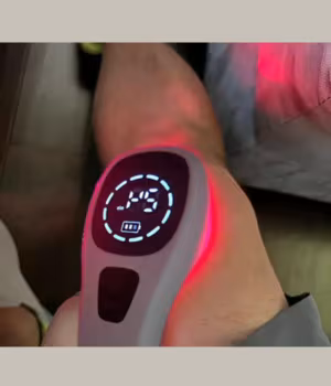 Light therapy accelerates the healing process, removes inflammation, and relieves pain by providing cells in the knee area with more energy, leading to improved mobility and comfort.